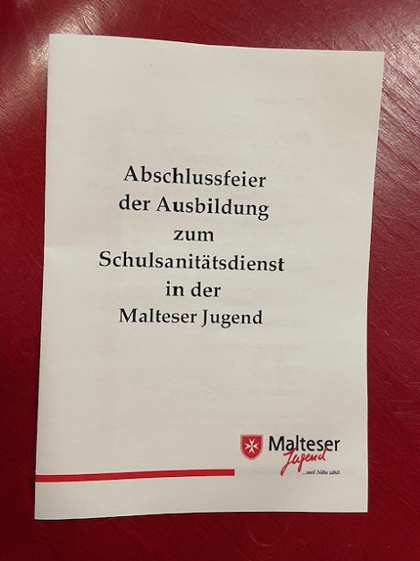 Alle neuen Schulsanitäterinnen und Schulsanitäter wurden für ihre bereits im Dezember erfolgreich abgeschlossene Ausbildung als besondere Anerkennung mit Polo-Shirts sowie dem traditionellen Malteser-Halstuch ausgestattet und im Beisein ihrer Familien mit Gebet und Gesang in die Gemeinschaft der Malteser-Jugend aufgenommen. Die Schule erhielt zudem einen neuen Notfallrucksack – ein wichtiges Ausstattungsstück, das hoffentlich nur selten zum Einsatz kommen muss.