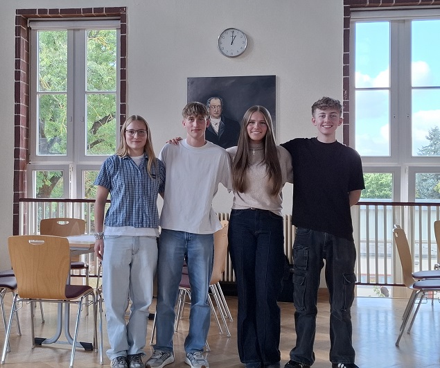 Unser neuer Schülersprecher ist Ludwig aus der 11. Klasse (Foto 2.v.l.). Zu Stellvertretenden wurden Lara (Kl. 12), Jakob (Kl.11) und Paula (Kl.10.) gewählt.